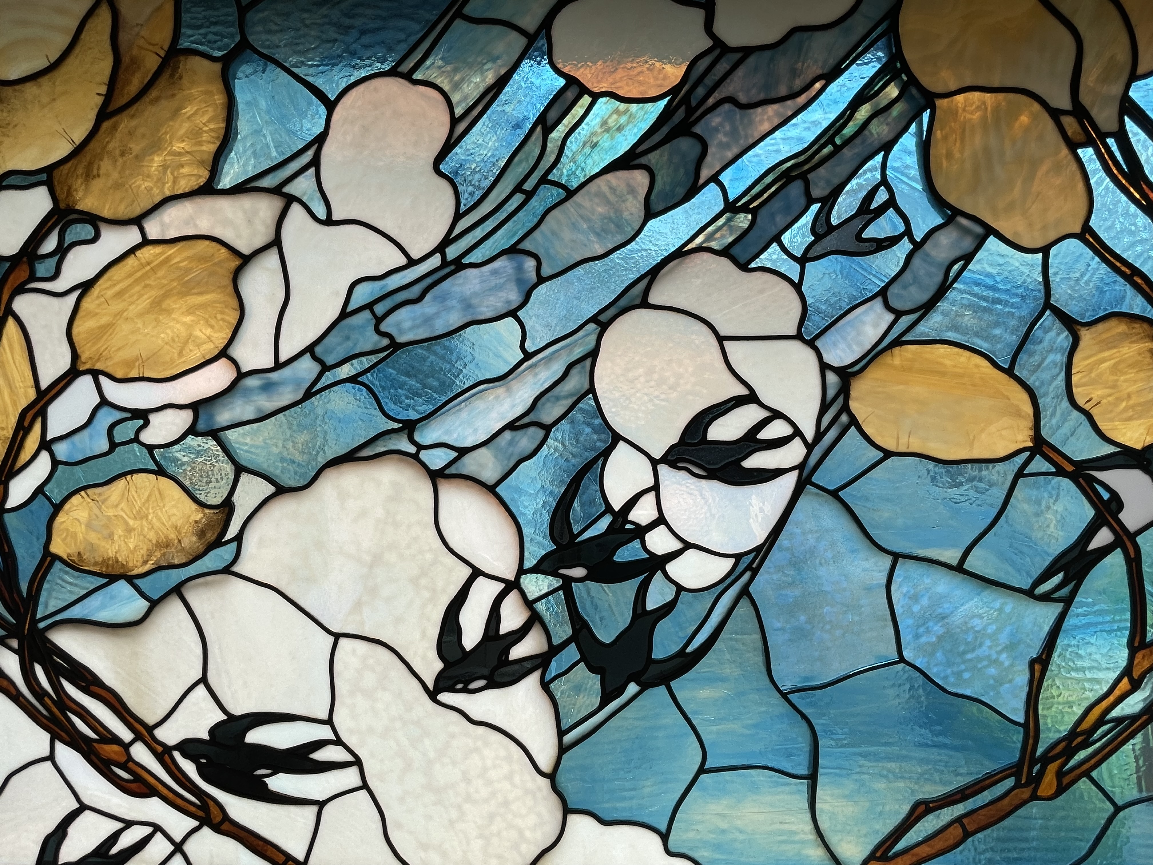 Il museo ha aggiunto più di 100 disegni e schizzi per vetrate istoriate, oltre a piastrelle decorative, parquet, legni intagliati e vetrate dello stesso periodo, come la seguente, splendida decorazione.