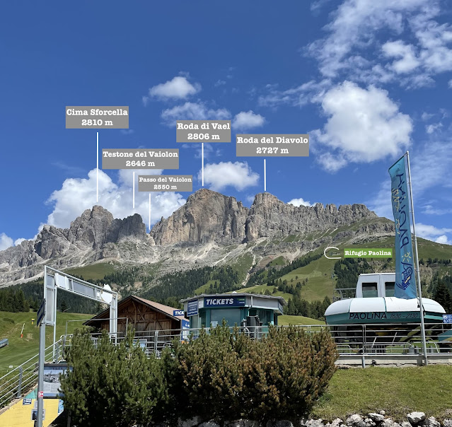 Oggi mi dirigo in senso opposto, scendo quindi sul sentiero 539 del Masarè verso il Rifugio Paolina, per completare l'escursione e l'anello, da cui prendo la seggiovia per tornare in Val d'Ega e recuperare l'auto.